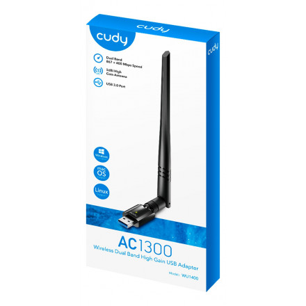 Adaptador Inalámbrico USB CUDY WU1400 Dual Band AC1300 Alta Ganancia