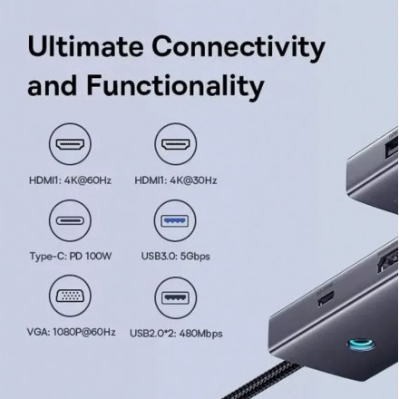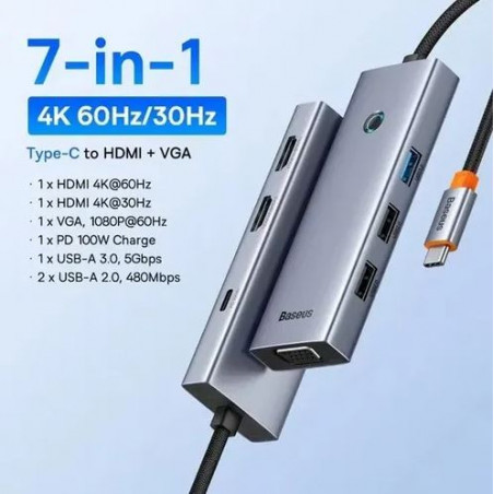 Hub Usb C 7 En 1 Baseus 3 Pantallas Hdmi 4k 60hz Vga Usb-a B0005300081100