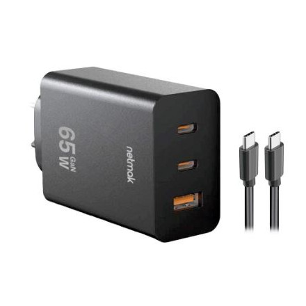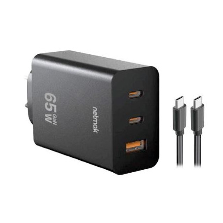 El Cargador GaN NM-CP42 de 65W te permite cargar hasta tres dispositivos simultáneamente con la máxima velocidad y seguridad.