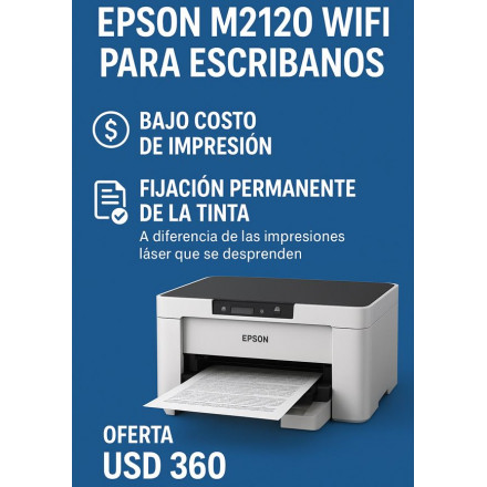 IMPRESORA MULTIFUNCION EPSON M2120 SISTEMA CONTINUO NEGRO WIFI ECOTANK