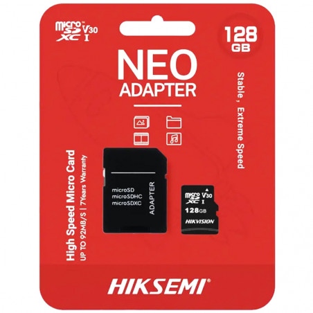 La tarjeta Micro SD Hiksemi Neo de 128GB ofrece almacenamiento confiable y rendimiento eficiente para dispositivos móviles, cámaras y más. Con velocidades de lectura de hasta 92MB/s y escritura de hasta 40MB/s, permite transferencias rápidas y estables. Ideal para quienes buscan capacidad y velocidad en un formato compacto.